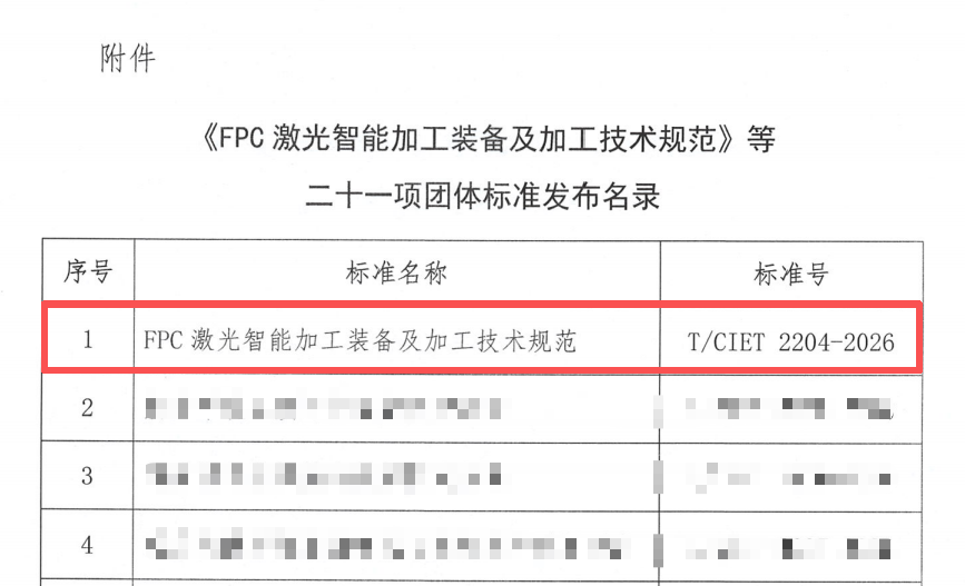 近日,由中國國際經(jīng)濟(jì)技術(shù)合作促進(jìn)會標(biāo)準(zhǔn)化工作委員會(以下簡稱“國促會標(biāo)委會”)聯(lián)合通標(biāo)中研標(biāo)準(zhǔn)化技術(shù)研究院共同組織的《FPC激光智能加工裝備及加工技術(shù)規(guī)范》團(tuán)體標(biāo)準(zhǔn)正式發(fā)布,該標(biāo)準(zhǔn)由武漢元祿光電技術(shù)有限公司牽頭起草,多家業(yè)內(nèi)企業(yè)及高校共同參與制定,此次發(fā)布的團(tuán)體標(biāo)準(zhǔn)系統(tǒng)界定了FPC激光智能加工裝備的定位精度、設(shè)備穩(wěn)定性等關(guān)鍵性能指標(biāo),助力行業(yè)實現(xiàn)高精度、高效率、綠色化制造。