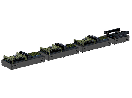 滿足剛性玻璃基底表面的薄膜類太陽(yáng)能電池刻蝕,采用四臺(tái)設(shè)備分別對(duì)應(yīng)不同薄膜電池不同功能層刻蝕需求。